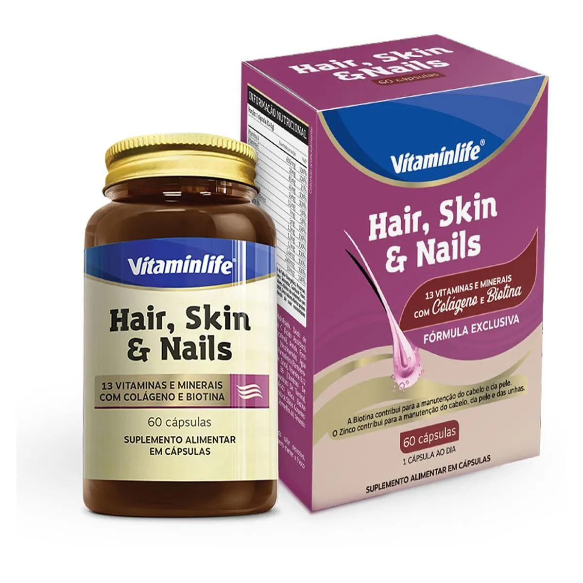 Hair, Skin e Nails Com Colágeno e Biotina – 60 Cápsulas – Vitaminlife